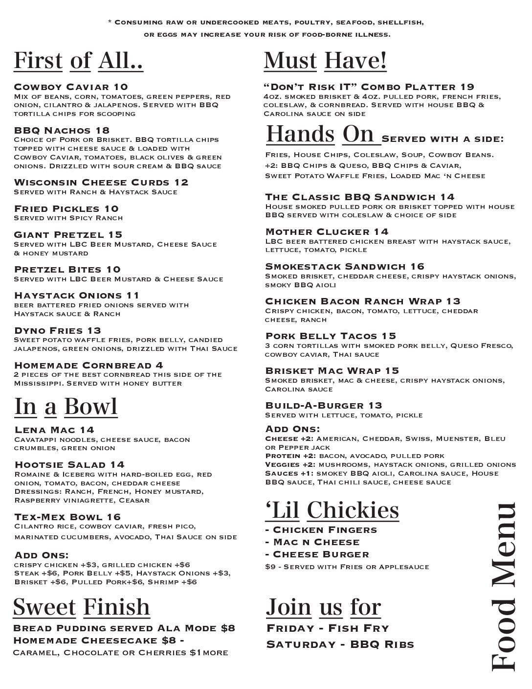 Place your order with an LBC beertender and we’ll bring it to you! !